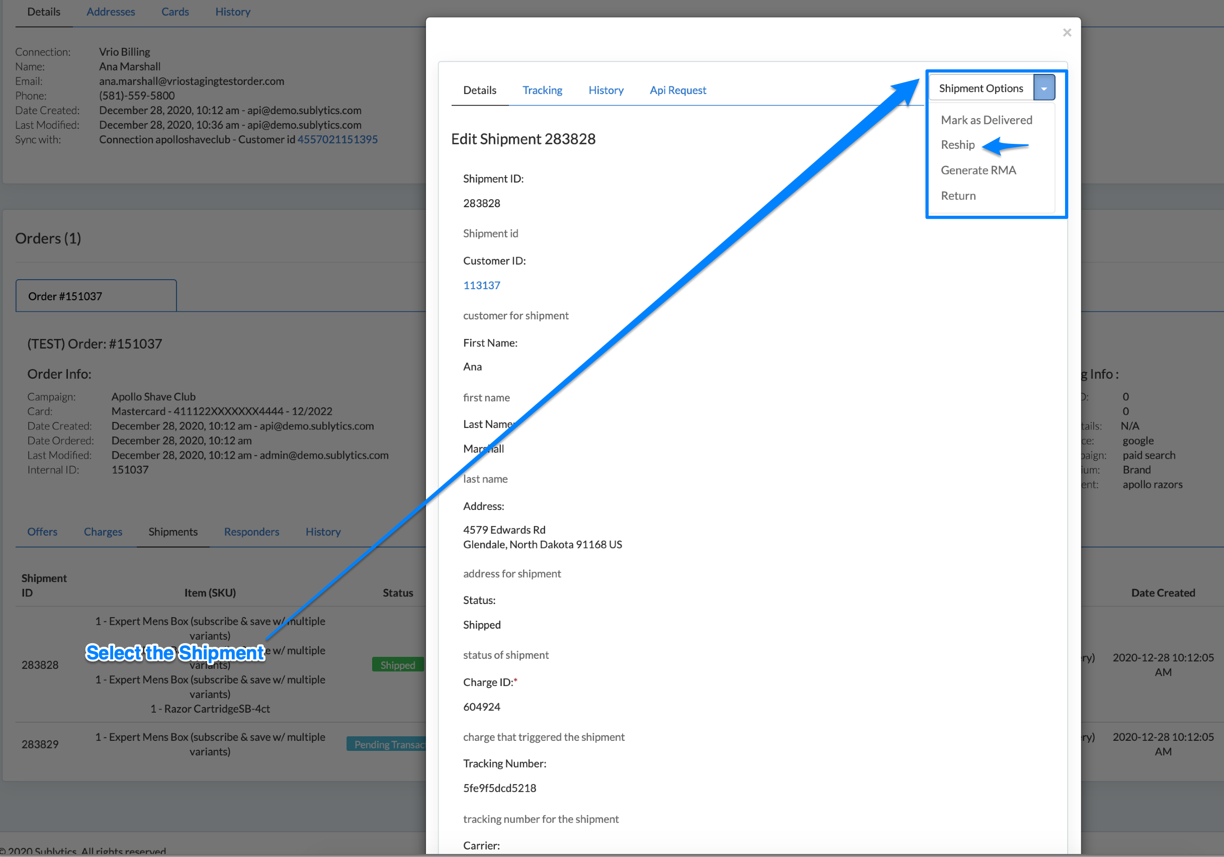 Items that have posted to Fulfillment are able to be Reshipped. Note: If Shipment Status is Pending Post, this has not yet posted to Fulfillment.